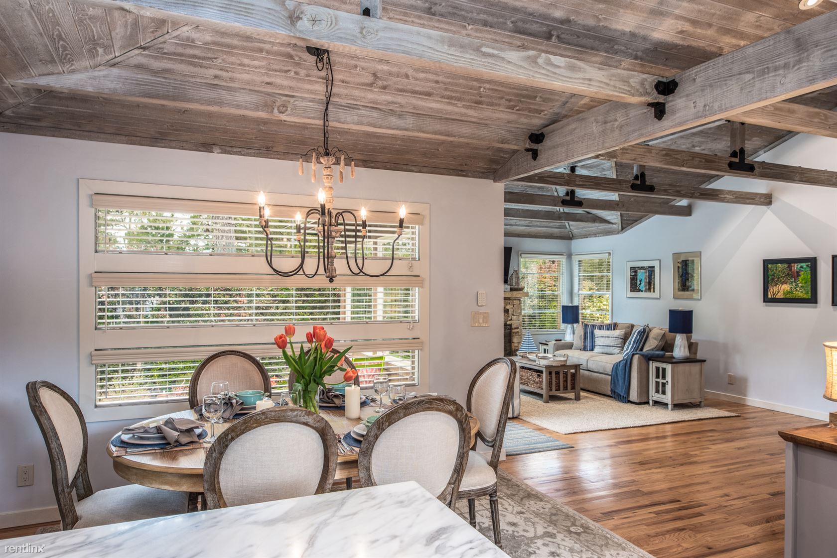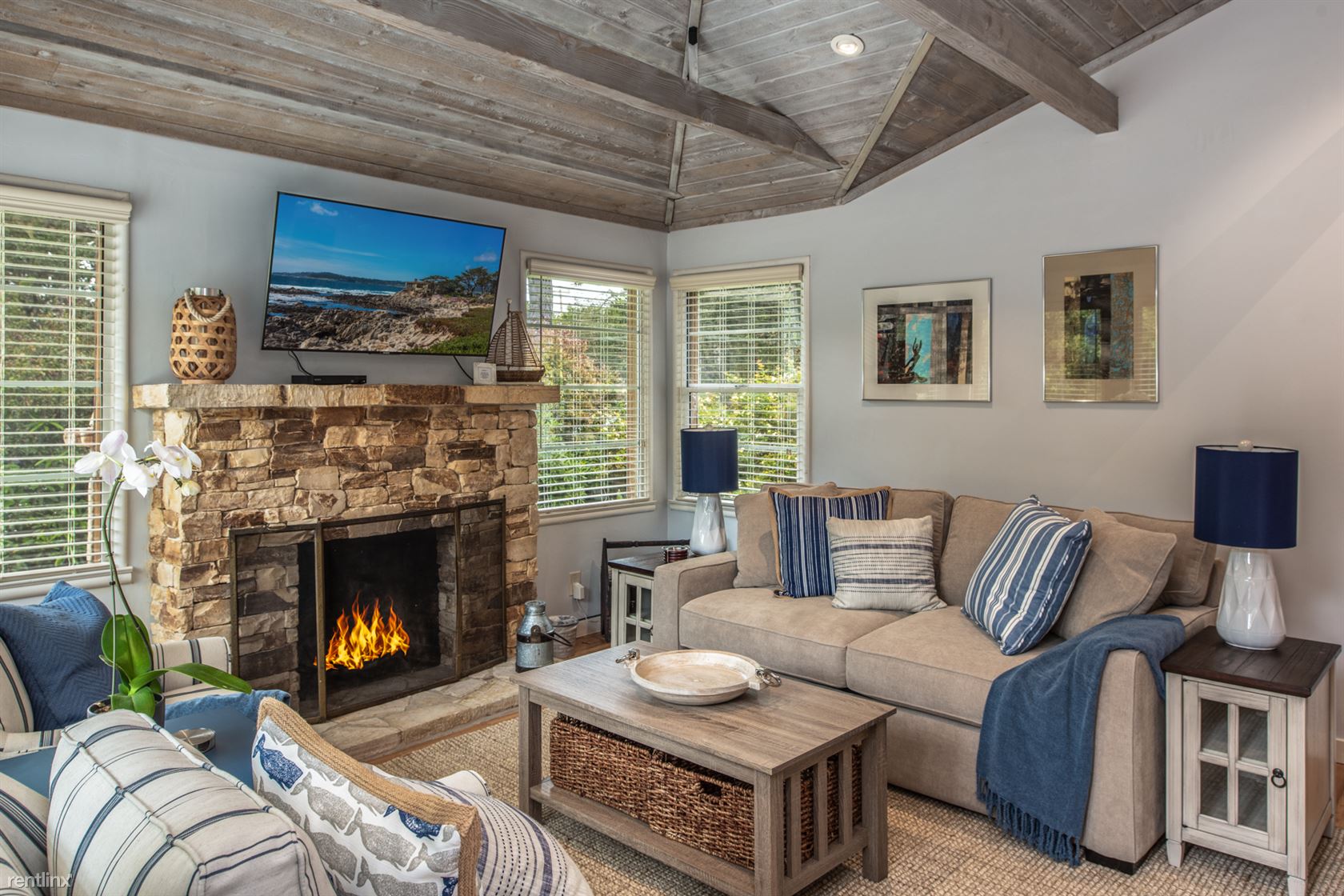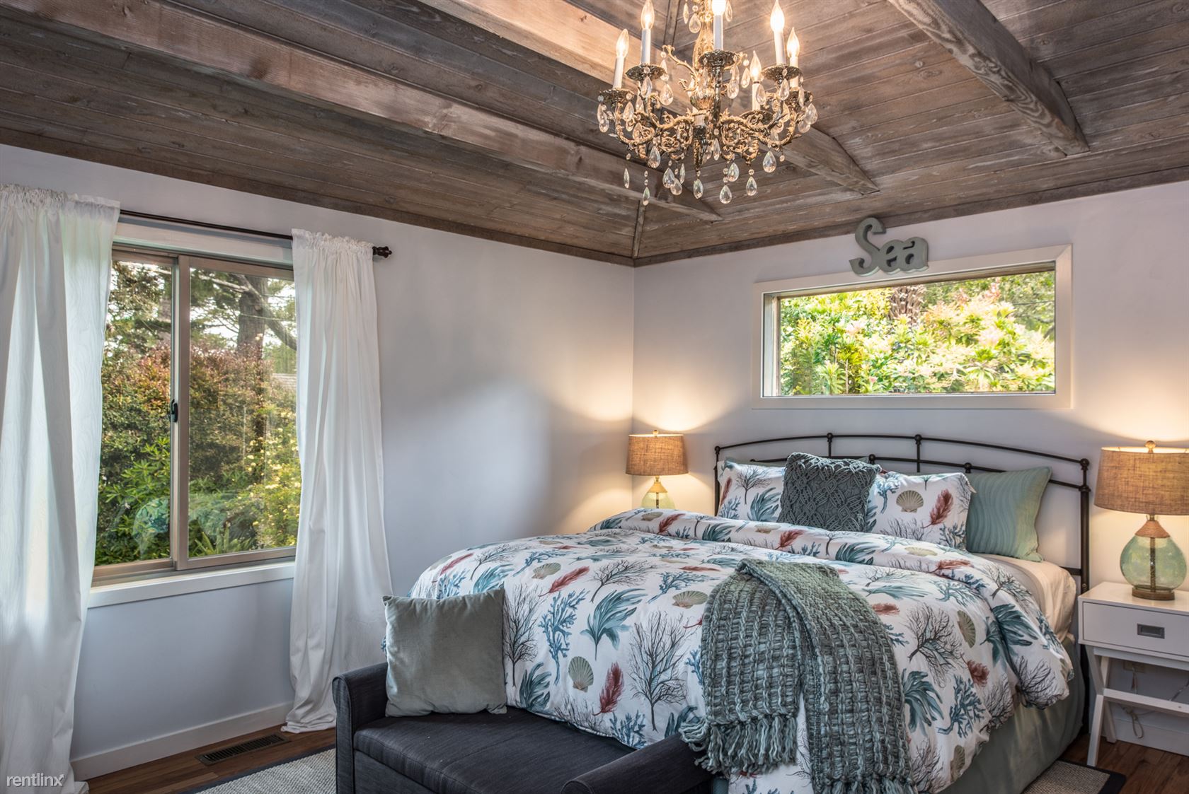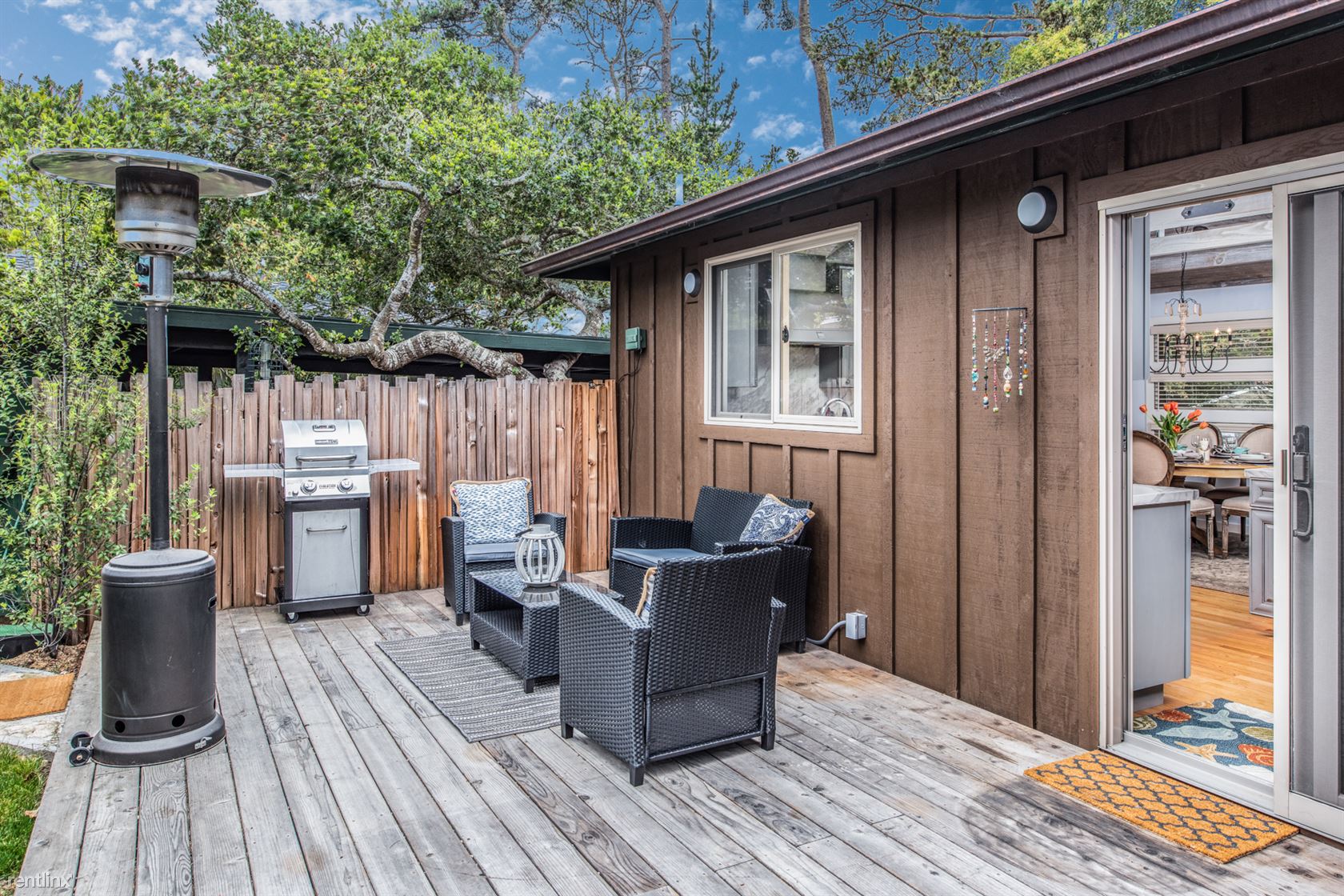***Please Do Not Disturb Tenants or Go Onto The Property Without the Listing Agent!*** ***The rental amount ranges from $4815 to $8828 per month depending on length of stay and time of year*** Prepare to fall in love with this newly renovated 2-bedroom, 2 bath home with a mature Carmel-style garden and its fresh, modern design, unique exposed ceiling beams, marble and granite counters, hardwood and travertine floors, Carmel stone gas fireplace, custom lighting and upgraded windows. The gorgeous kitchen is open and bright with beautiful cabinets, high-end appliances, a gas range, loads of counter space and a sparkling Shaw’s Farmhouse sink. Soft-closing drawers and cabinets help keep the whole space serene. The beautiful landscaping includes a private and fenced front and backyard deck. This is a fine place for entertaining on the deck off the kitchen. Enjoy this quiet neighborhood with easy access to the city of Carmel and to the beach. 2 bedroom, 2 bath King bed in master suite along with step in closet and en suite bathroom. Two twins can become a king in the guest bedroom which is adjacent to the hall bath with shower over tub. Home is newly renovated and freshly furnished throughout including new beds. This fully furnished vacation home has a lovely front yard with a privacy shrub border partially enclosing it. A fence at the rear of the property divides the space between the rear cottage from the main house. The rear cottage may become available for rent in the future and in the meantime is occasionally used by the Owners. Living room includes a gas fireplace with stone surround. Open beam white washed ceilings and many windows keep the open concept living area light and bright. Wooden blinds cover the windows when you desire privacy. Stacking washer and dryer is located in a closet near the bedrooms. Off street parking for 1-2 cars. Pets considered with pet fee. (RLNE4146131)